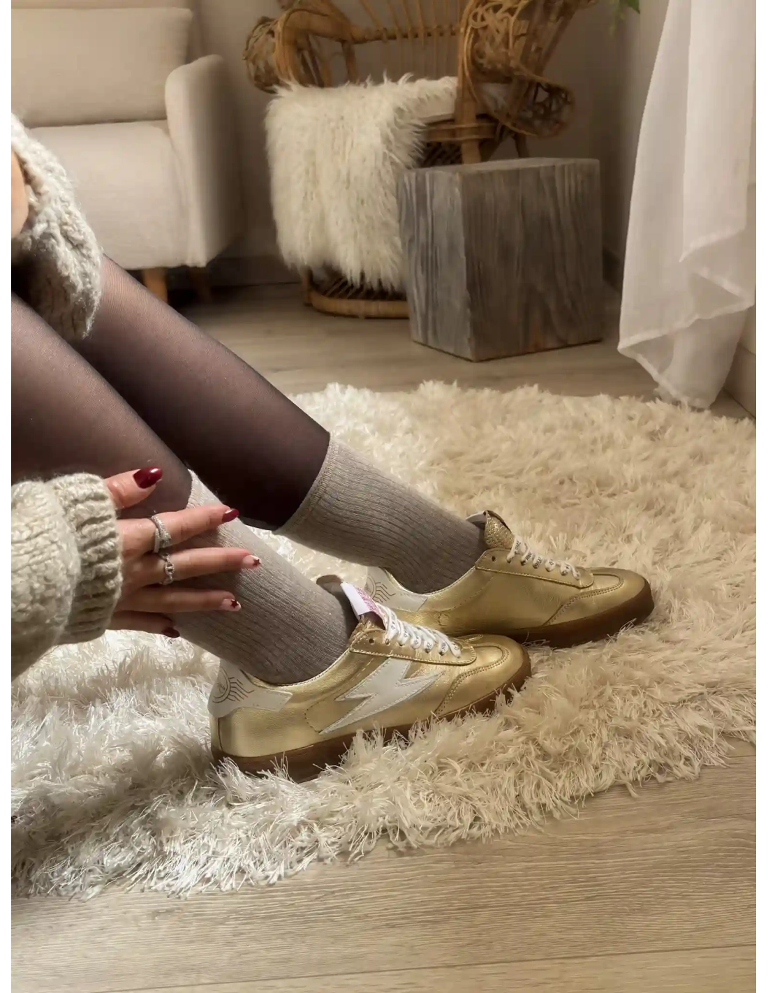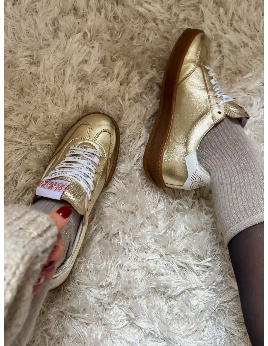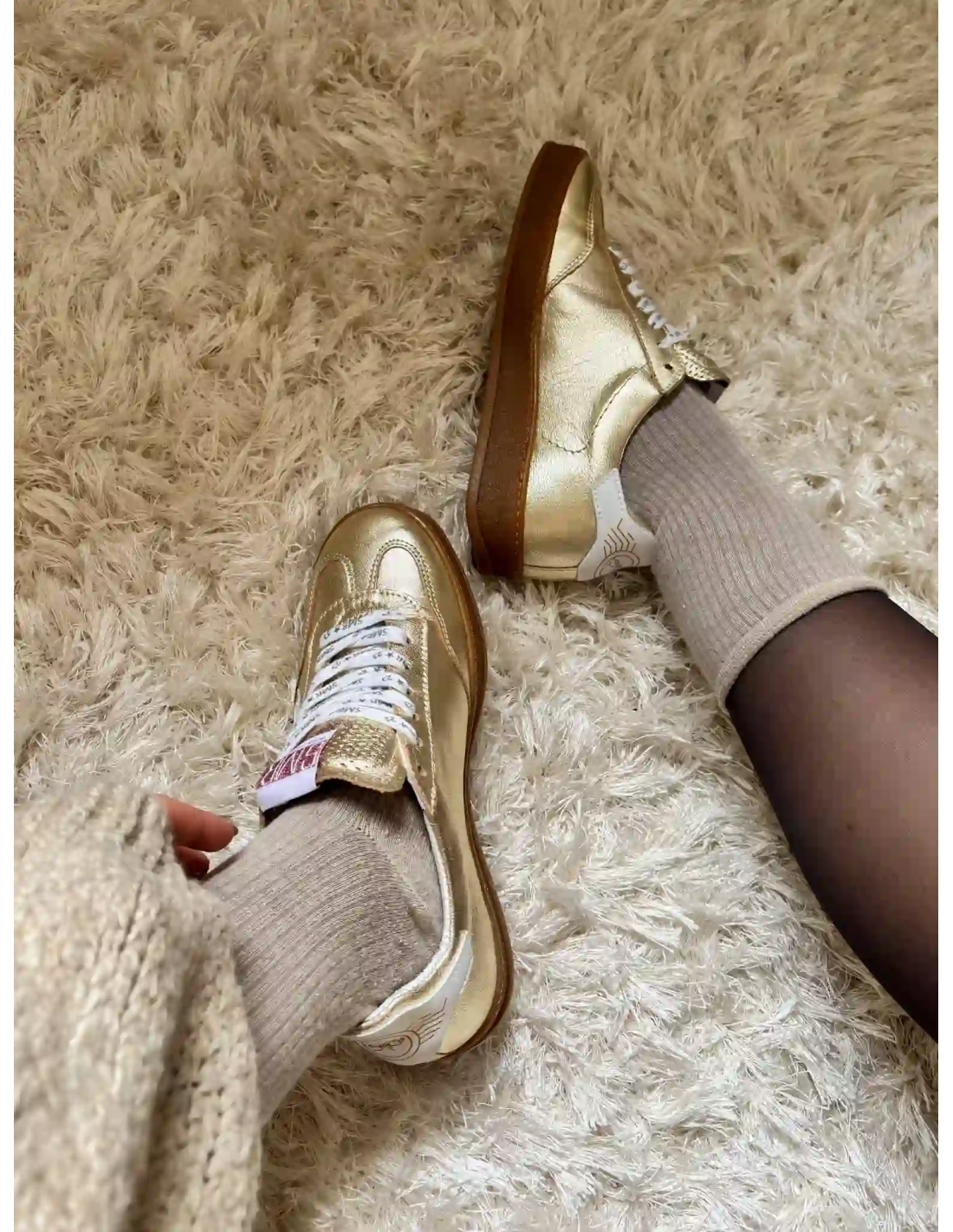 Le modèle RISY de la marque Semerdjian est une basket basse de couleur doré, fabriquée en croute de cuir avec des empiècement en cuir doré et une semelle en gomme de couleur miel. La languette est perforée pour un style unique. La nouvelle paire tendance de votre dressing.
