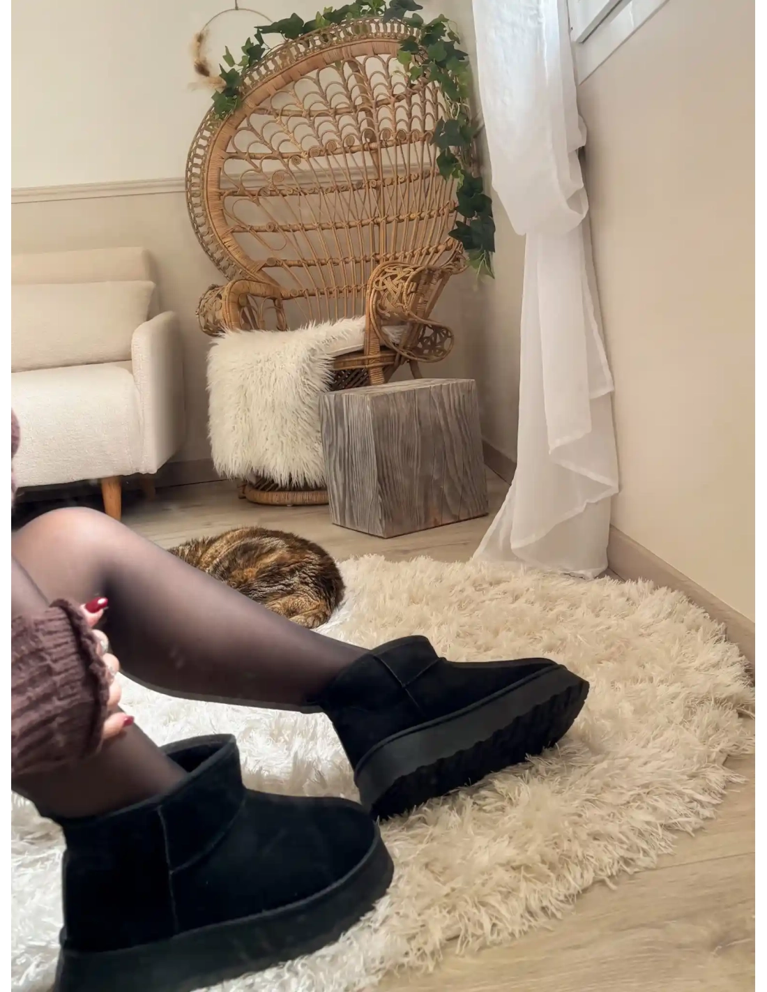 Ces bottines noires sont un incontournable de la saison. Leur design minimaliste et leur suédine apportent une touche d'élégance à toutes vos tenues, qu'elles soient décontractées ou plus habillées. L'intérieur est doublé d'une matière douce et chaleureuse en offrant un confort exceptionnel pour affronter les journées les plus froides avec style.