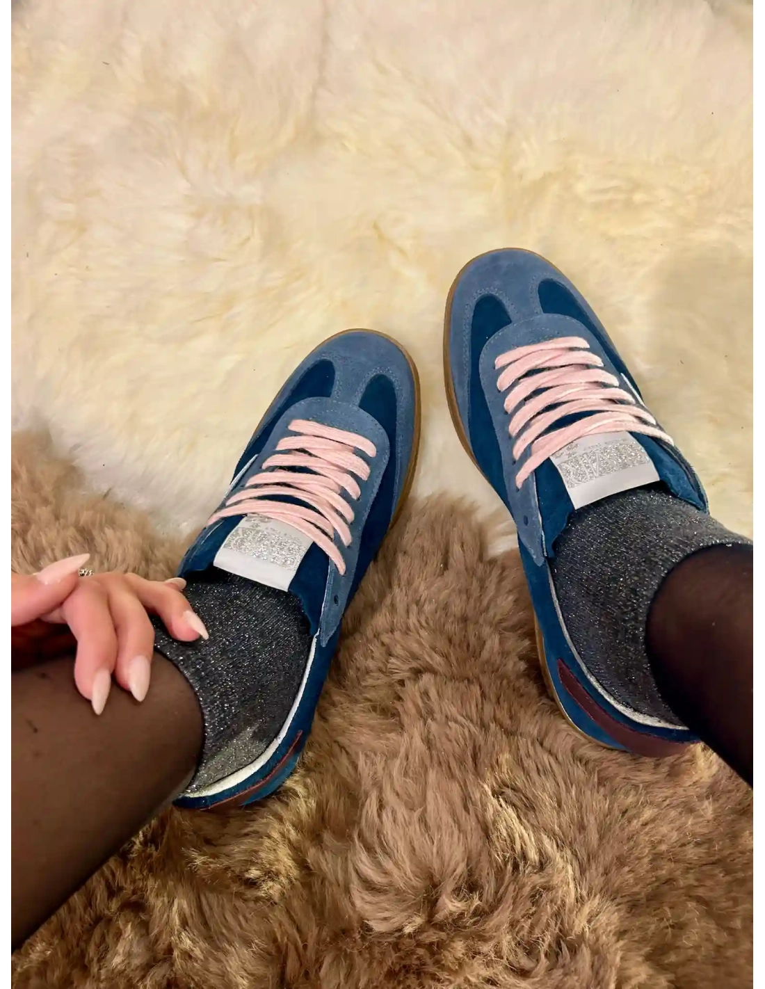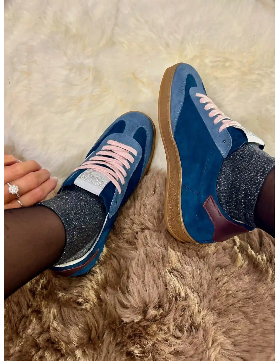 Le modèle RISY de la marque Semerdjian est une basket basse de couleur bleue marine, fabriquée en croute de cuir avec des empiècement en cuir blanc et une semelle en gomme de couleur miel. La languette est perforée pour un style unique. La nouvelle paire tendance de votre dressing.