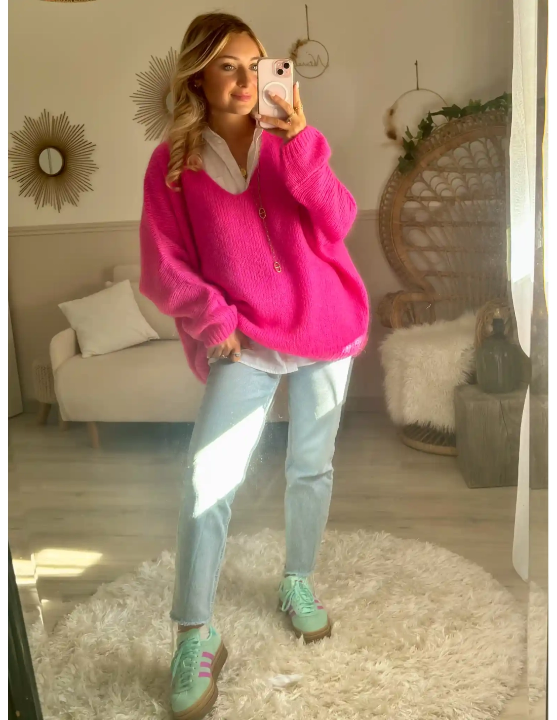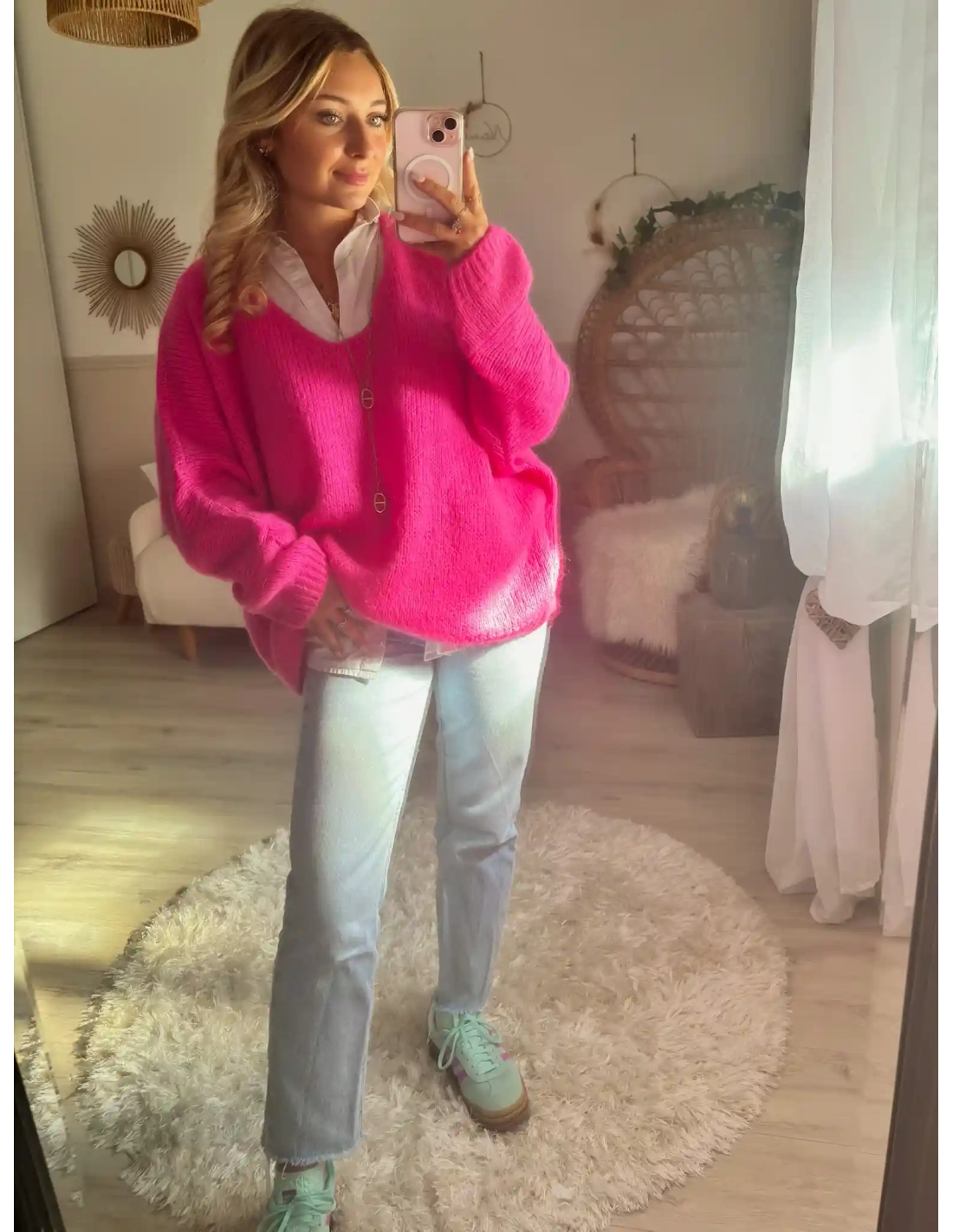 Ce petit pull AMARENA simple s'accordera parfaitement à toutes vos tenues. Ce pull en maille douce allie parfaitement confort et style. Sa couleur éclatante apporte une touche audacieuse à n'importe quelle tenue, idéale pour égayer les journées fraiches.