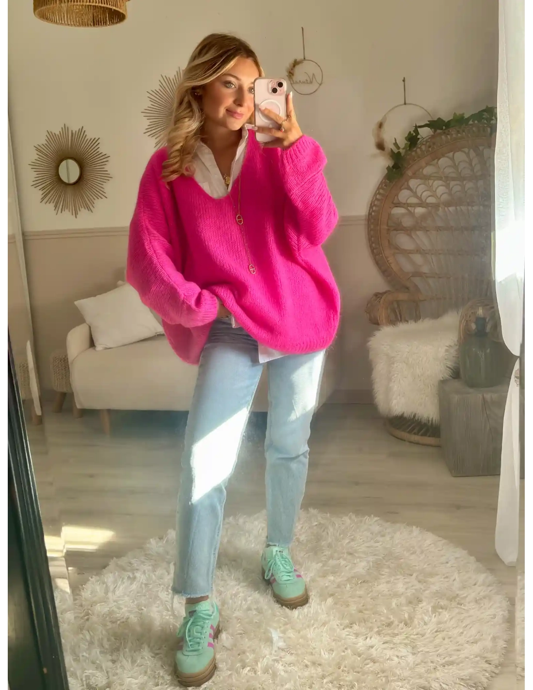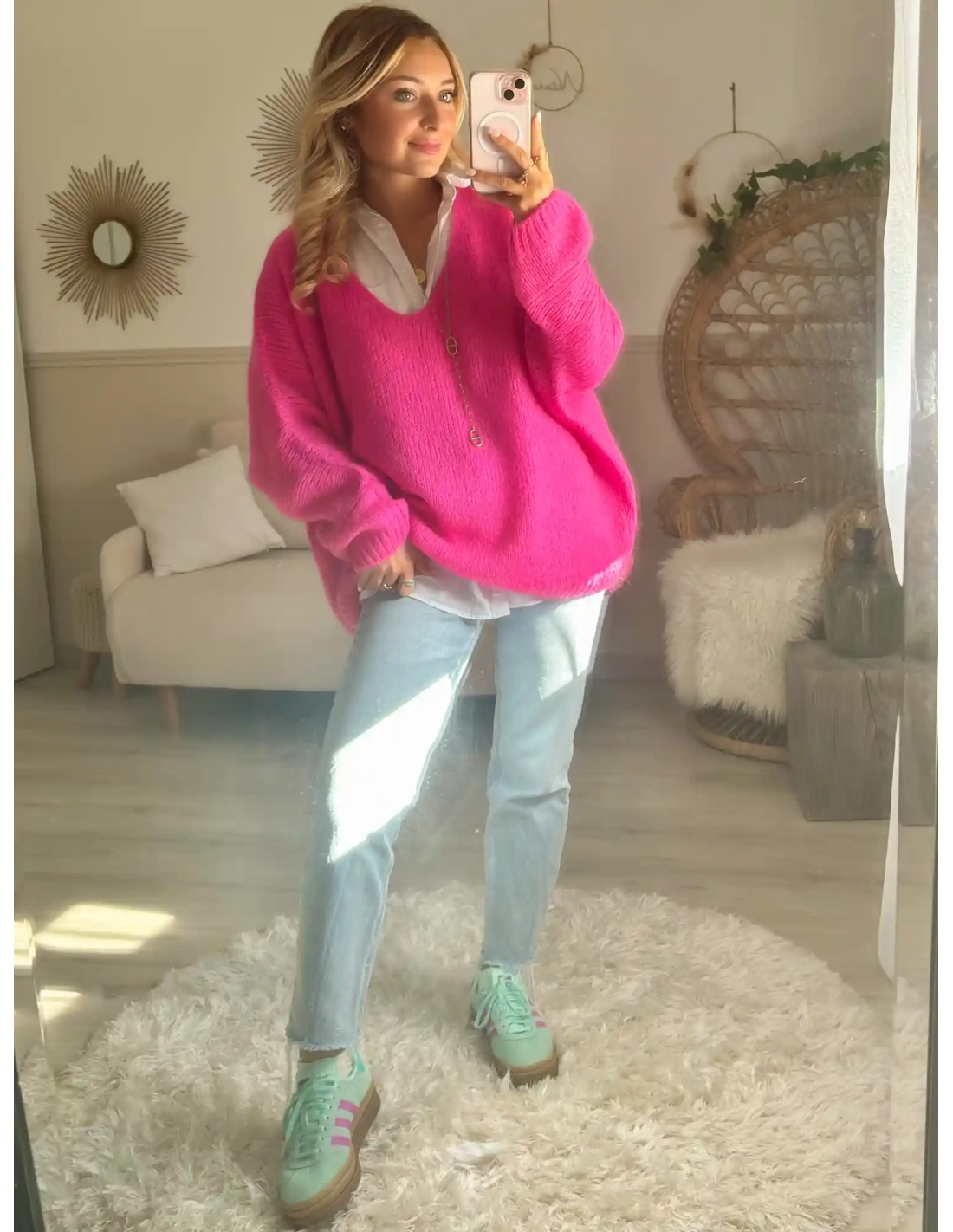 Pull - AMARENA En maille douce Couleur traditionnelle Col en V Coupe oversize Made in Italy