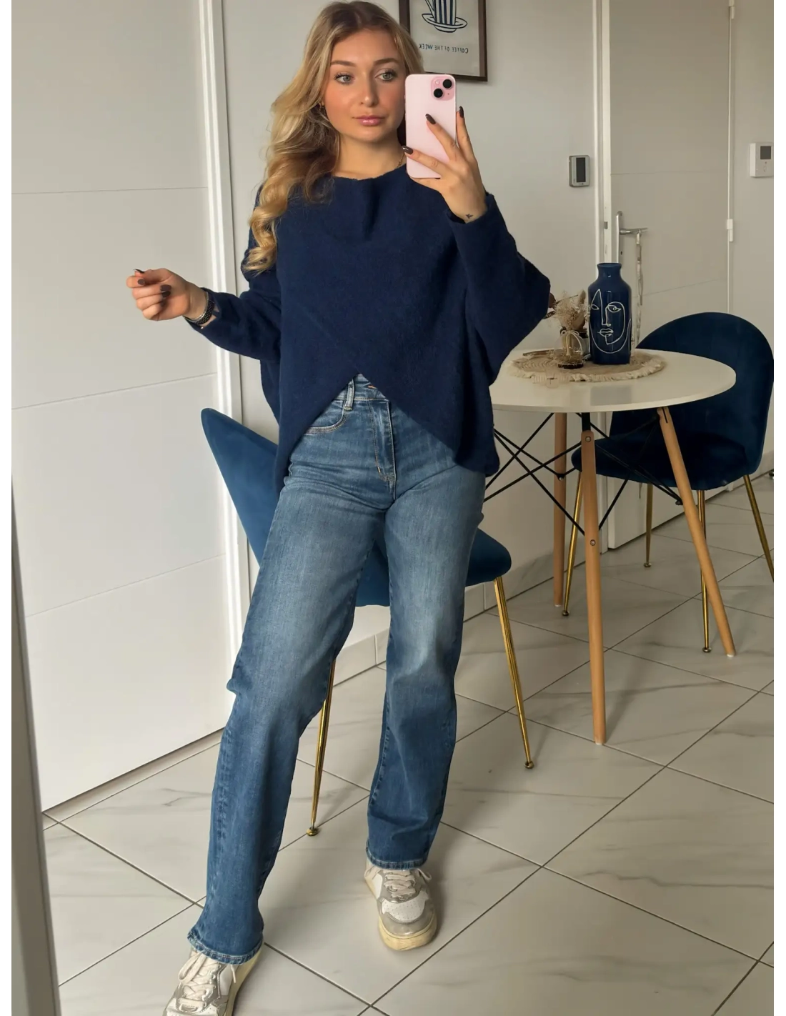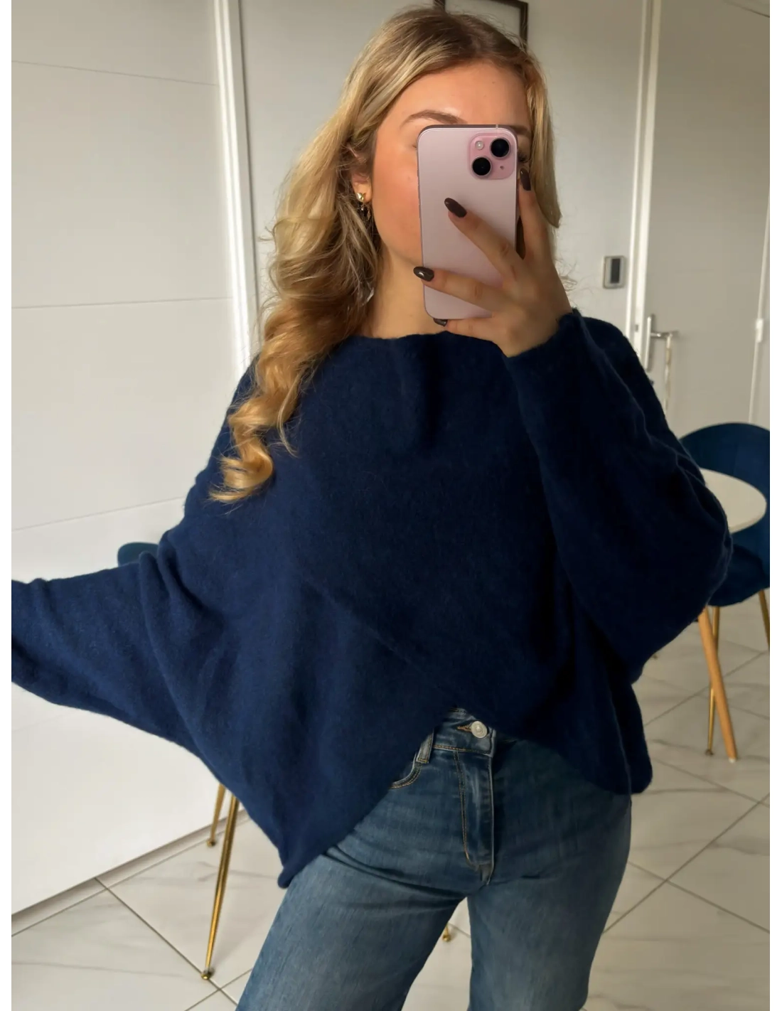 Ce pull Bleu marine oversize est l'incarnation du confort et du style effortless ! Avec sa coupe fluide et sa texture douce, il se pose en parfaite pièce de superposition pour l'automne, hiver. Son design croisé à l'avant ajoute une touche originale.