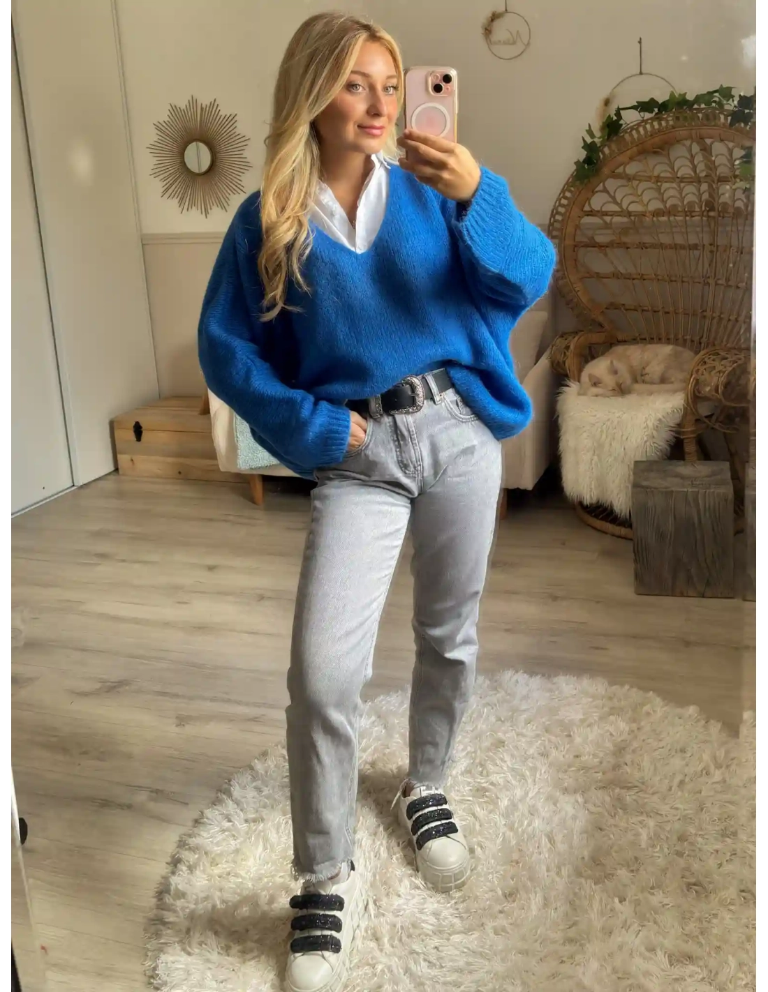 Ce petit pull AMARENA simple s'accordera parfaitement à toutes vos tenues. Ce pull en maille douce allie parfaitement confort et style. Sa couleur éclatante apporte une touche audacieuse à n'importe quelle tenue, idéale pour égayer les journées fraiches.