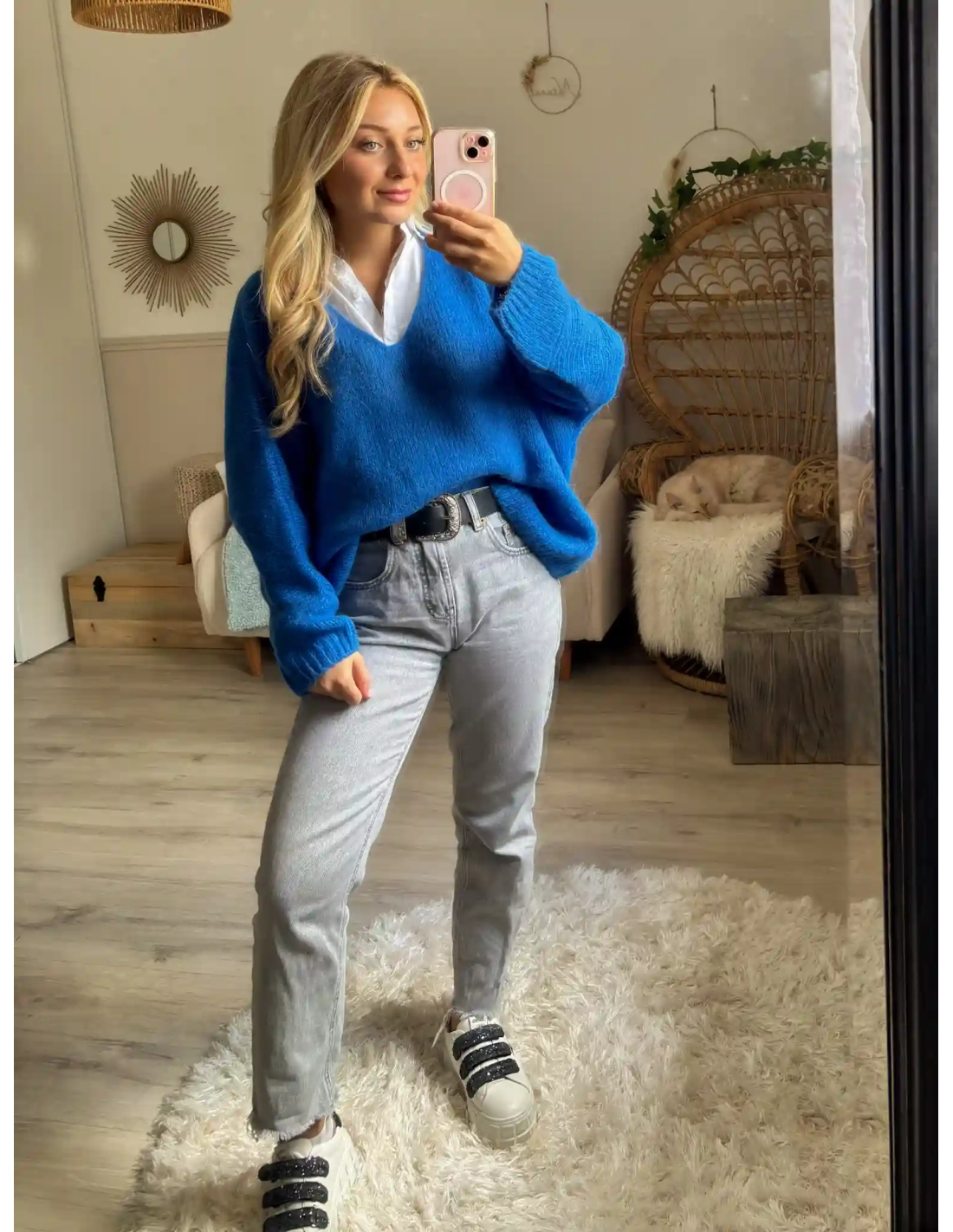 Pull - AMARENA En maille douce Couleur traditionnelle Col en V Coupe oversize Made in Italy