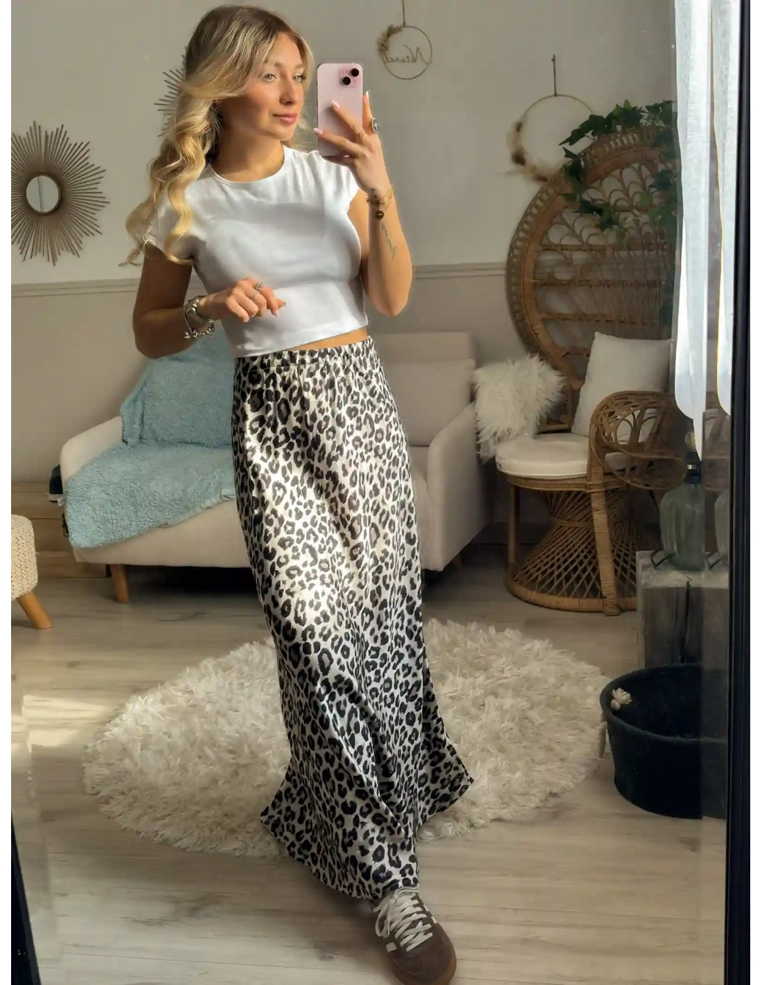 Une jupe fluide et satinée qui apporte une touche d'élégance et de modernité à votre look. Parfaite pour un style minimaliste chic ou une tenue de soirée sophistiquée.