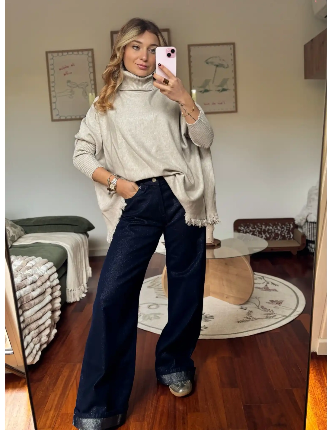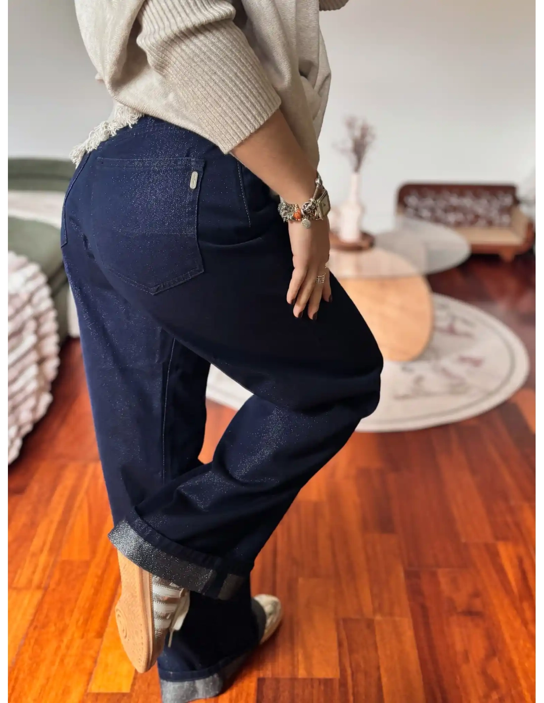 Ce jean coupe large séduit par sa coupe fiable et intemporelle, pensée pour offrir un confort optimal sans compromettre le style. Confectionné dans un denim de qualité, il se distingue par ses subtils détails métallisés.