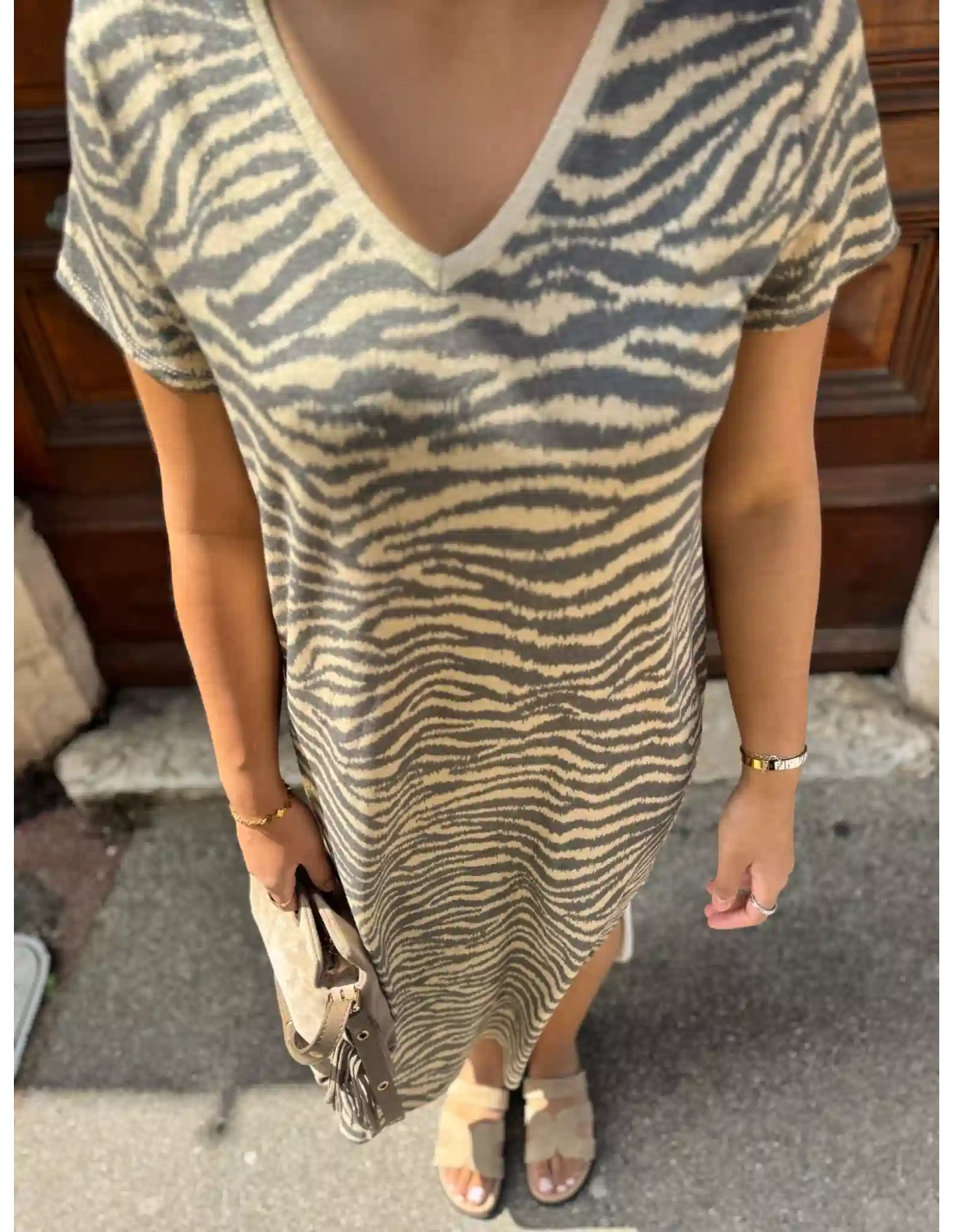 La robe Rosa est une pièce incontournable pour un look casual chic et moderne. Avec sa coupe droite longue, elle offre une silhouette fluide et élégante, adaptée à toutes les morphologies. Son col V féminin et ses manches courtes apportent une touche de légèreté idéale pour les beaux jours.