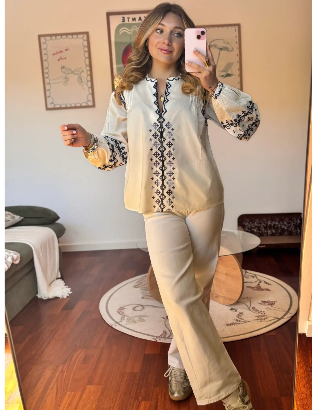 Blouse brodée - CLEO Marque : Pépé Jeans Matière : Tencel, doux, léger et respirant Coupe : Fluide et aérienne Détails : broderies géométriques contrastantes