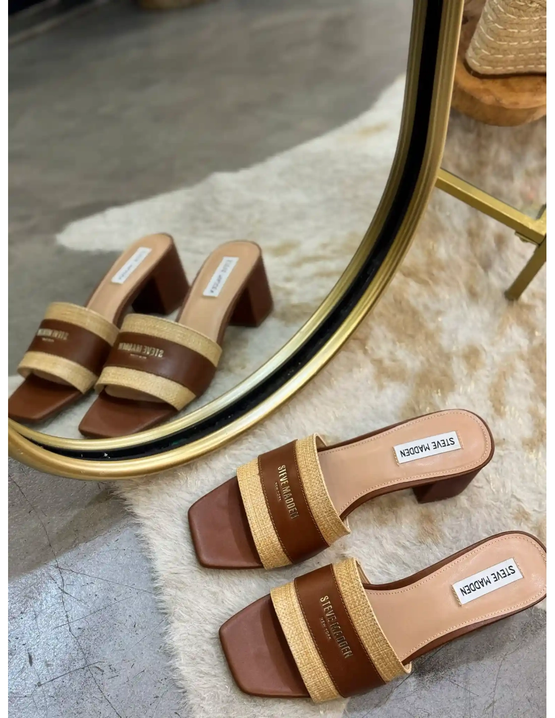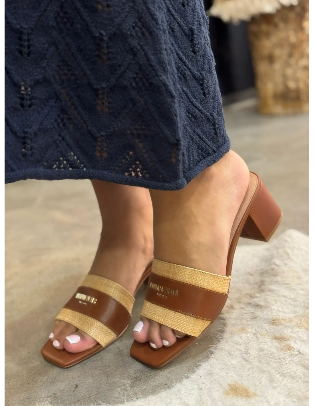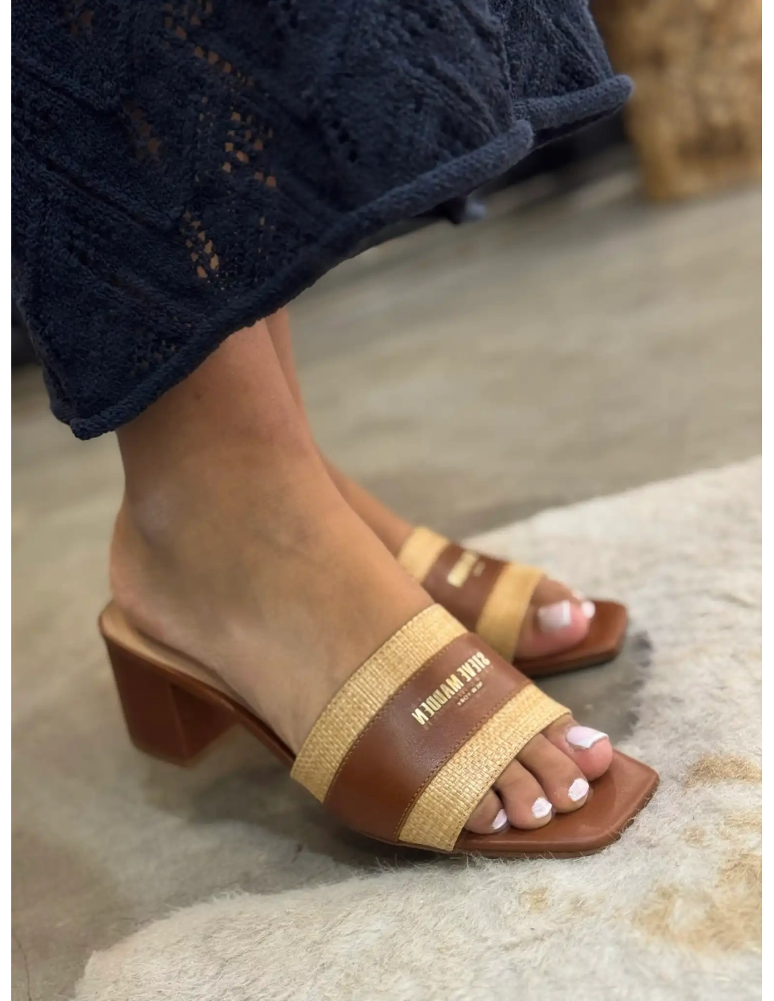 Ces mules cognac à talon de la marque Steve Madden sont l'incarnation parfaite d'une féminité moderne et délicate. Leur design minimaliste est sublimé par ce jeu de double matière.