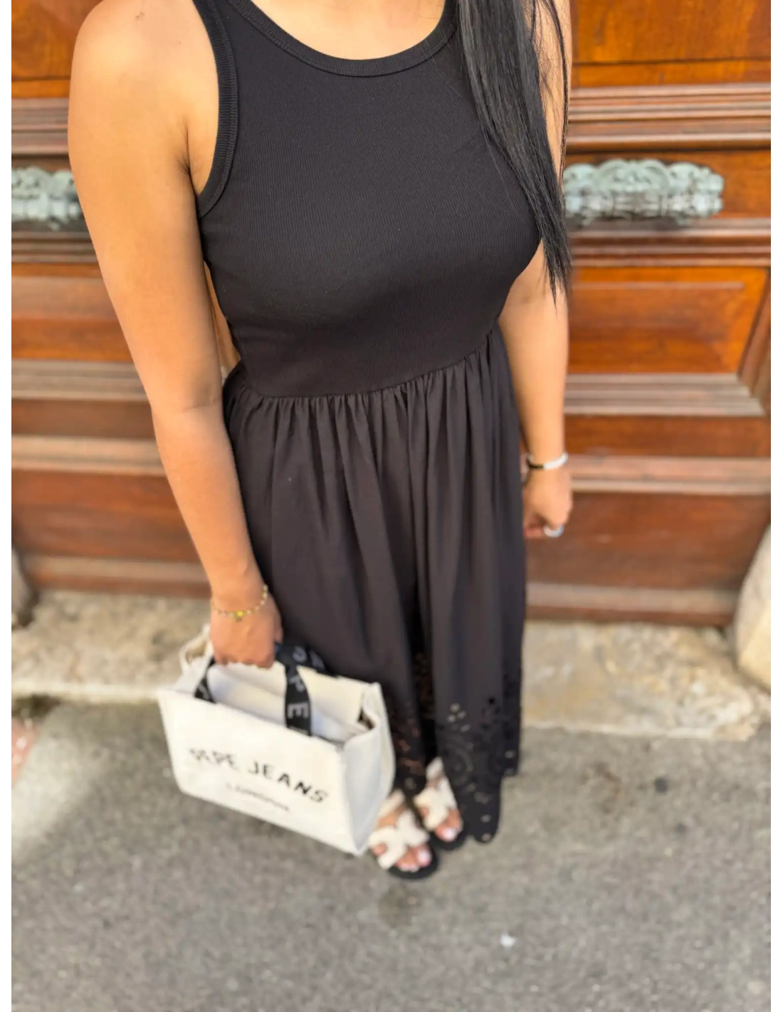 Craquez pour cette robe longue en coton Pépé Jeans,  une pièce à la fois minimaliste et raffinée qui sublime la silhouette avec douceur. Parfaite pour la saison printemps/été, elle allie confort absolu et élégance intemporelle.
