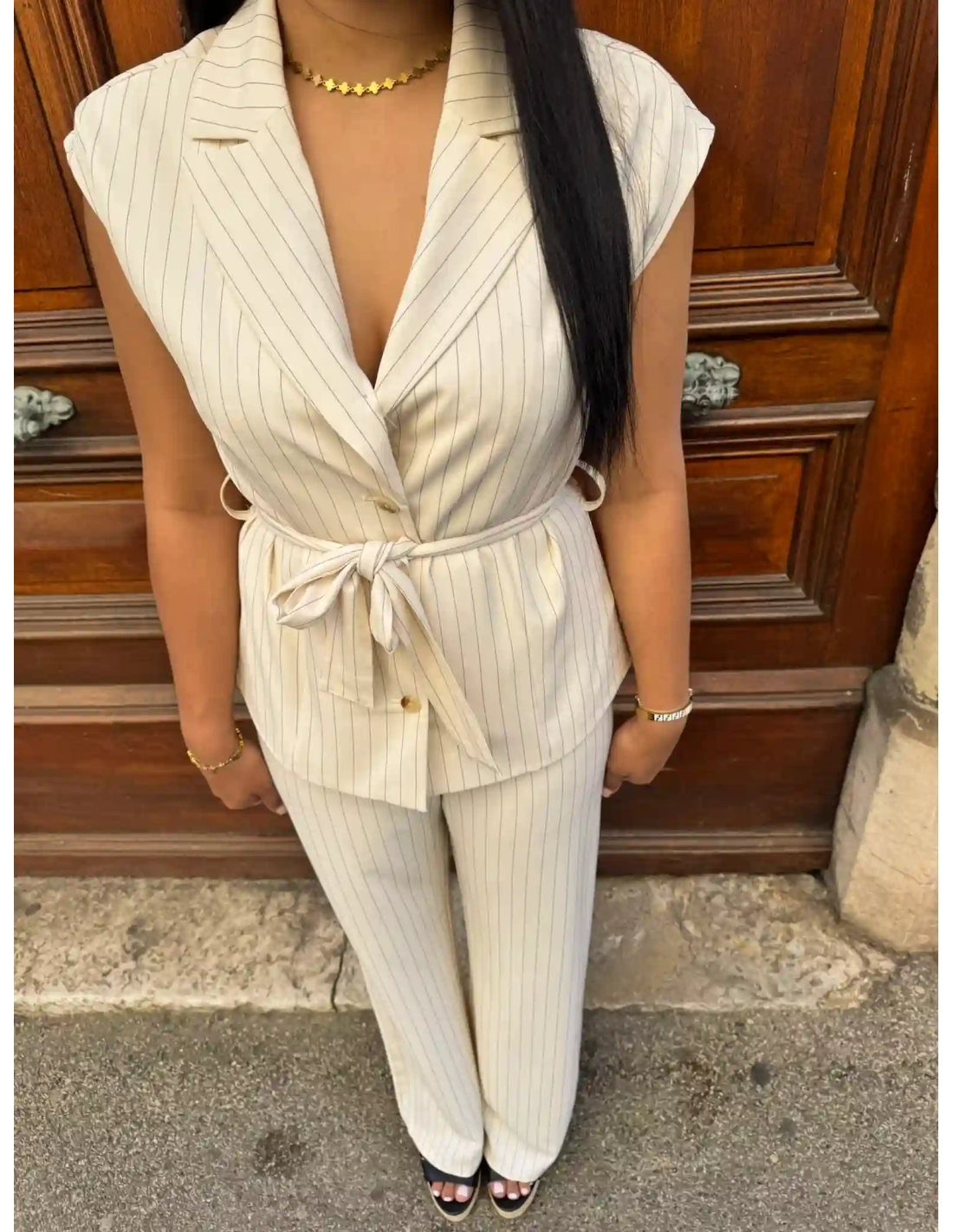 Complétez votre look avec ce pantalon style tailleur rayé de la marque Le temps des cerises, parfait mélange entre élégance et confort. Sa coupe fluide et ses lignes épurée en font un indispensable du dressing.