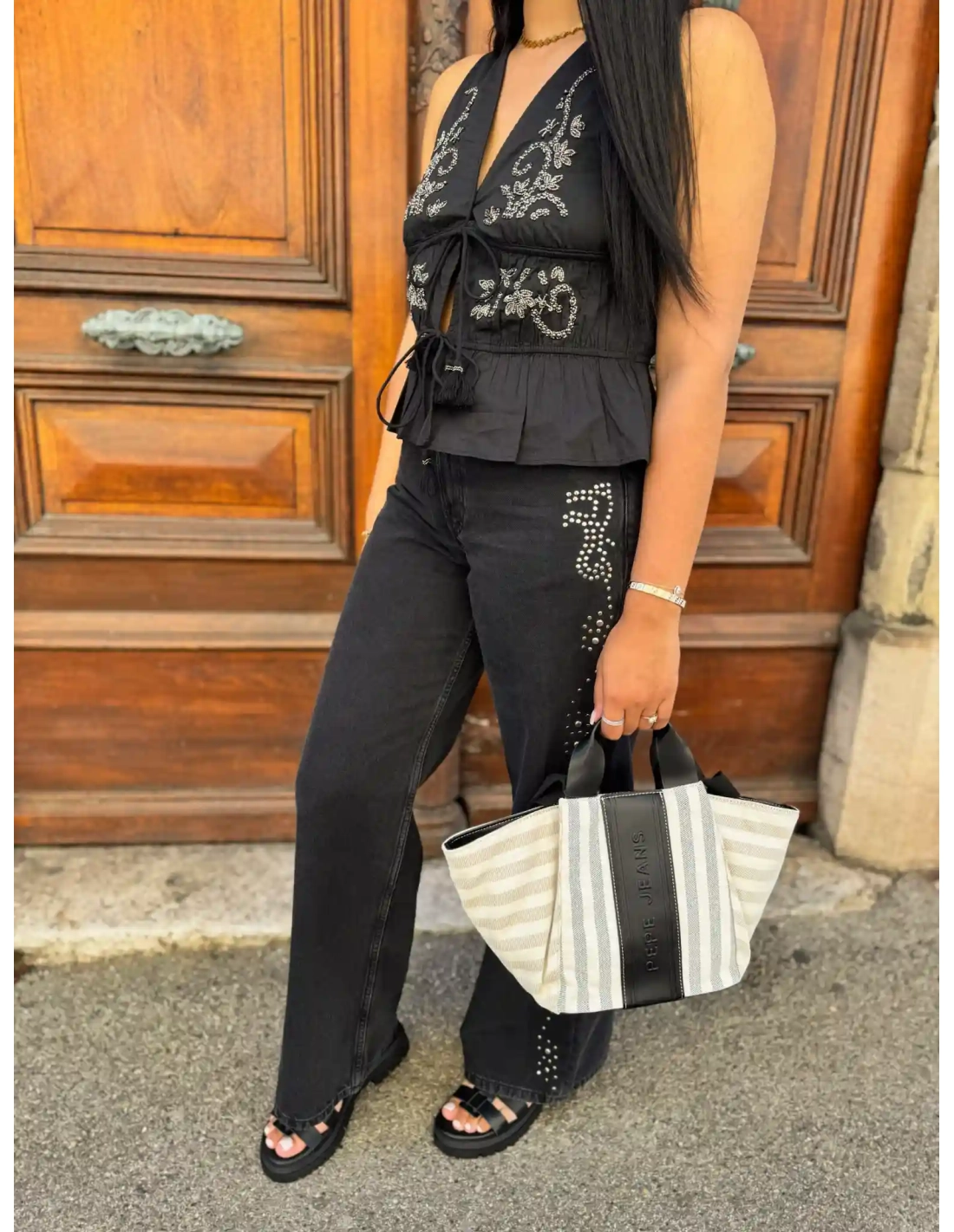 Ce sac à rayures PEPEJEANS allie praticité et style dans un format compact idéal pour le quotidien. Sa toile légère et résistante en fait un compagnon fiable, tandis que son motif rayé apporte une touche fraîche et moderne à vos tenues.