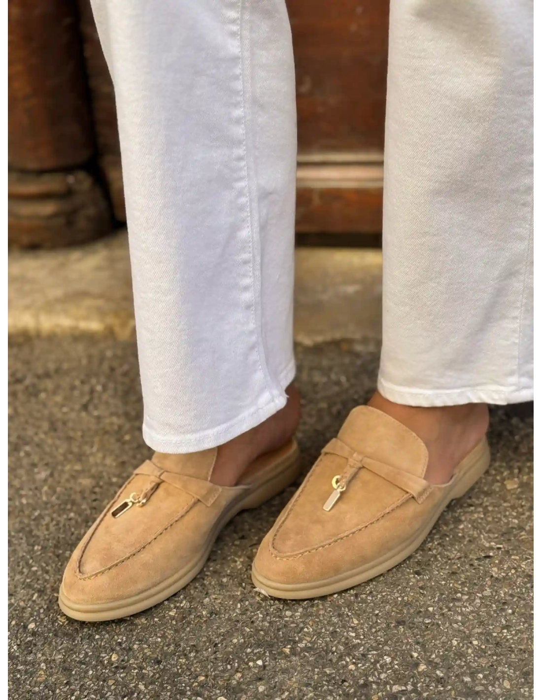 • Détail : Petit pendentif doré sur le devant de la chaussure