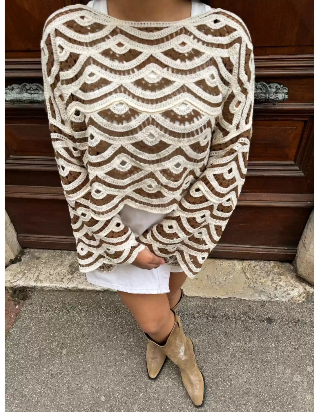 Apportez une touche d'originalité à votre dressing avec ce sublime haut en crochet délicat. Véritable pièce coup de coeur, il allie parfaitement style bohème, vintage revisité et tendance actuelle.
