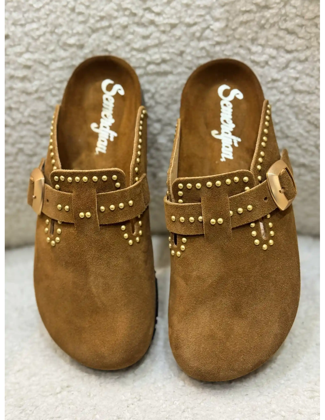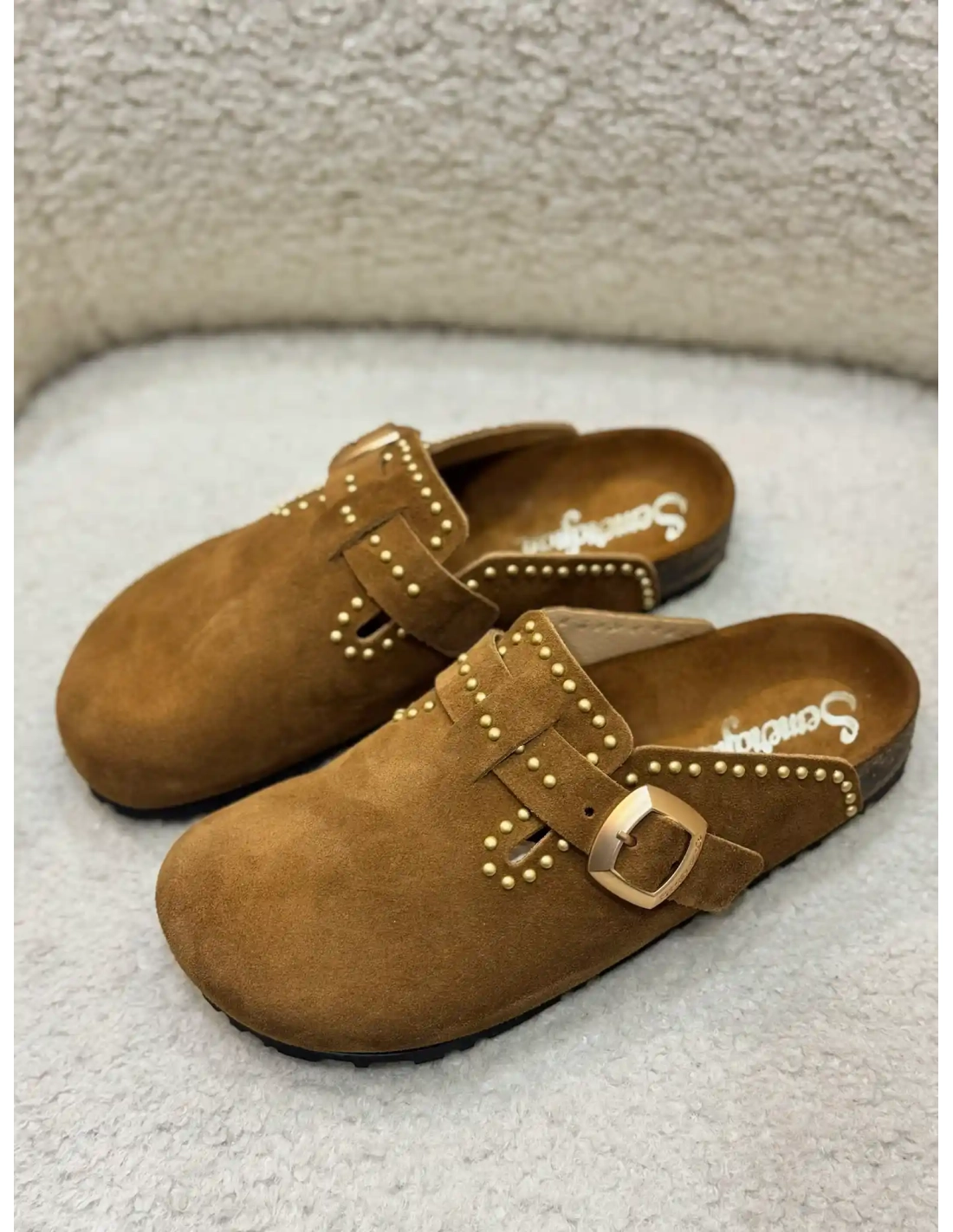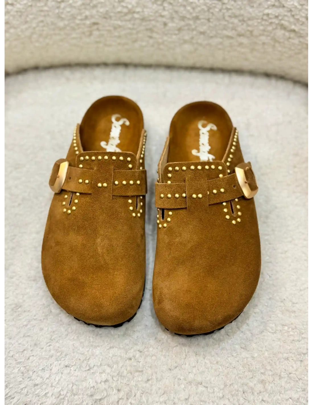 Les sabots Femme Amelia Daim Camel de Semerdjian allient confort et élégance avec leur design en daim doux et raffiné. Leur teinte camel intemporelle s'harmonise facilement avec toutes vos tenues estivales, tout en apportant une touche bohème chic. Des clous dorés subtilement disposés ajoutent une note d'éclat et de caractère. Conçus pour le bien-être, ces sabots offrent une démarche légère et décontractée, parfaits pour les journées ensoleillées.