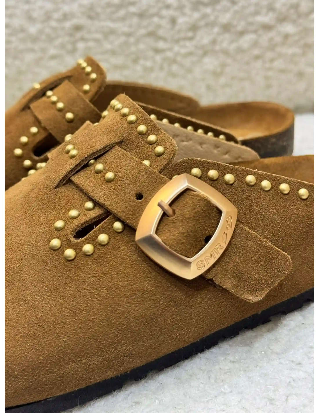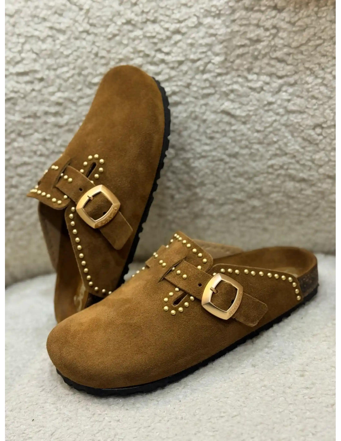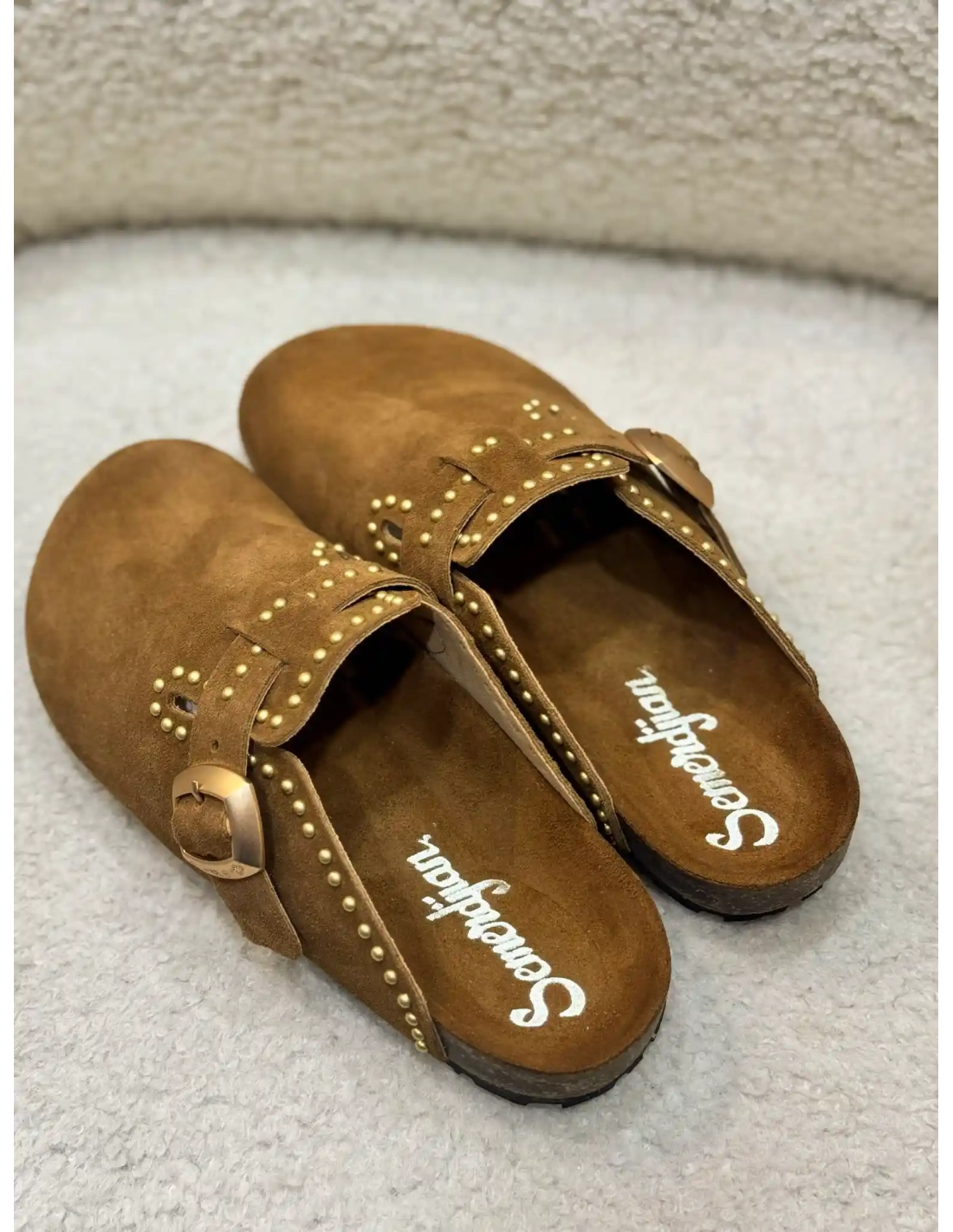 Les sabots Femme Amelia Daim Camel de Semerdjian allient confort et élégance avec leur design en daim doux et raffiné. Leur teinte camel intemporelle s'harmonise facilement avec toutes vos tenues estivales, tout en apportant une touche bohème chic. Des clous dorés subtilement disposés ajoutent une note d'éclat et de caractère. Conçus pour le bien-être, ces sabots offrent une démarche légère et décontractée, parfaits pour les journées ensoleillées.