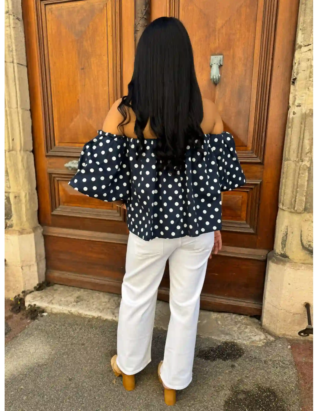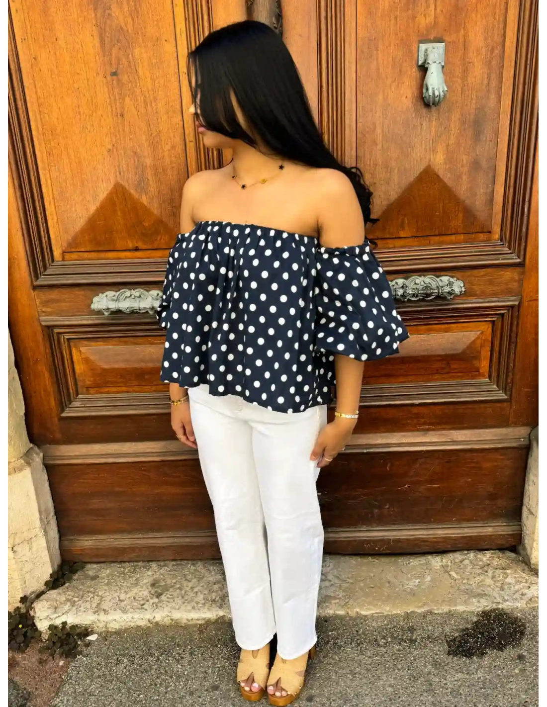Ce top coupe bardot à pois est la pièce parfaite pour un look estival à la fois chic et décontracté. Son encolure élastiquée bardot dévoile délicatement les épaules pour une allure féminine et tendance. On adore ses manches bouffantes qui apportent du volume et une touche mode irrésistible. Facile à associer, il devient vite un essentiel du dressing d’été.