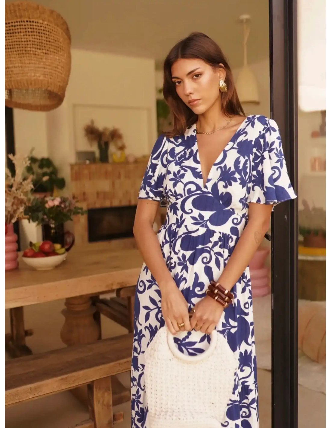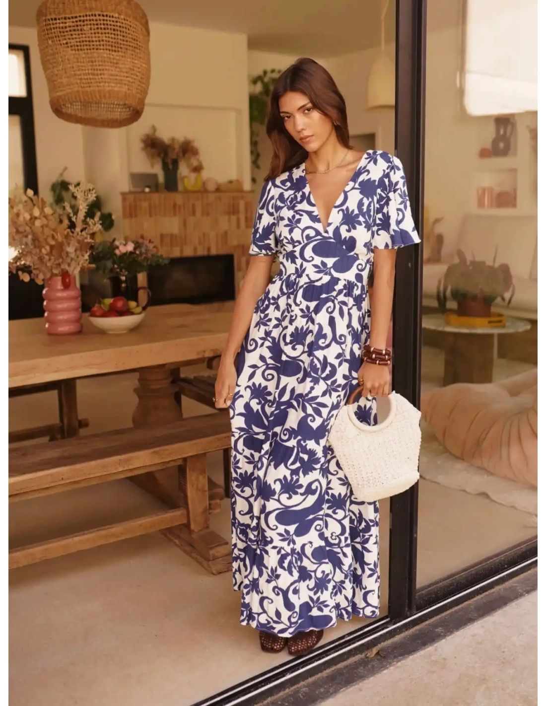 La robe coup de coeur de la saison. Avec sa coupe longue flatteuse, ses manches courtes légèrement évasées et son imprimé floral. Cette robe incarne l'esprit bohème chic.